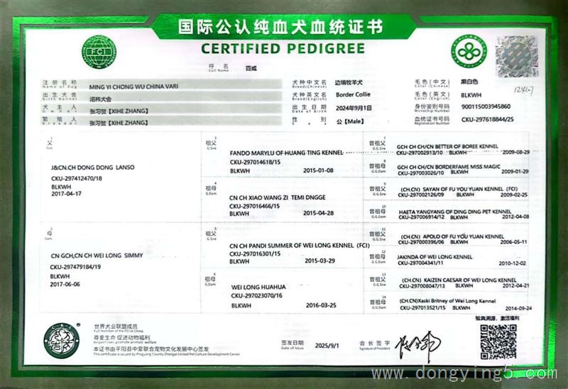 1岁优质边境牧羊犬百威,公犬,对外(出租..